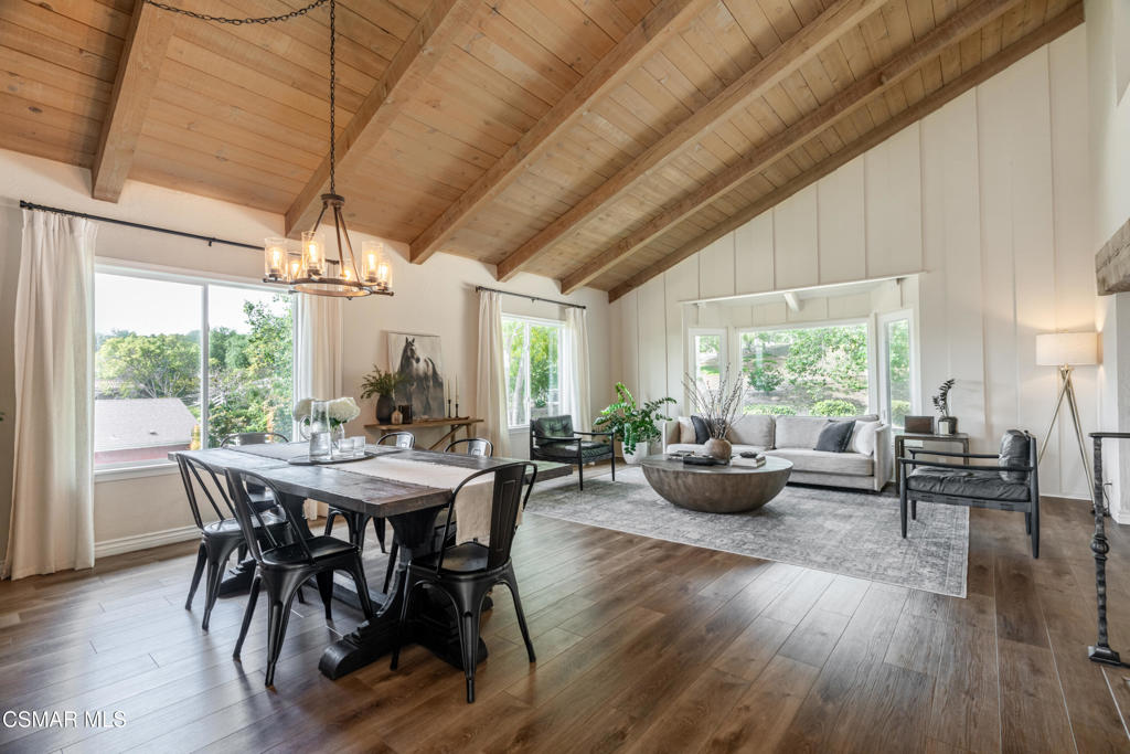 Stunning Santa Rosa Valley estate with expansive lot and incredible views. Highly desirable natural light filled open floor plan with 4 bedrooms, 3 bathrooms, and bonus room. Extensively remodeled with exquisite decor and design throughout. Bright and open living room connects seamlessly with the formal dining area. Vaulted ceilings with wood accents. Remodeled chef's dream kitchen is ideal spot to host friends and family, beautiful cabinets, ample storage, walk-in pantry, tile backsplash, top-of-the-line stainless steel appliances, prep sink, and big center island with breakfast bar. Adjoining spacious family room with brick fireplace, and sliding doors. Private primary suite with retreat, walk-in closet, luxurious tub and separate shower. 2 additional bedrooms upstairs and 1 bedroom downstairs. Private entertainers dream yard, resort living with huge sparkling pool and jacuzzi, patio with multiple seating areas, cozy outdoor fire pit, and tremendous views. 2 car garage. Towering Sycamore trees, long winding driveway, and bridge that leads up to the property. Near hiking, riding, and biking trails. A special offering, must see!