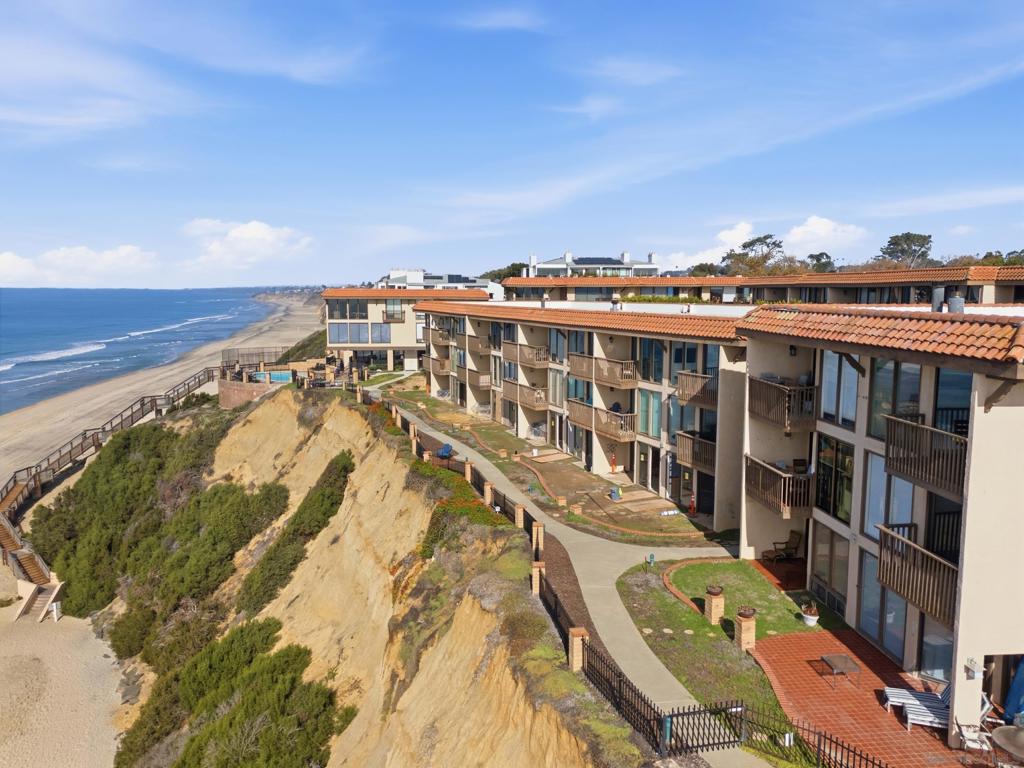 Partial Ocean views in soon to be remodeled top-floor, turnkey, 1 bed+1 bath condo (currently under renovation). Be the FIRST to enjoy this gem of a property & brand new sleek design. This condo represents coastal living at its best in Solana Beach’s highly sought after gated Del Mar Shores Terrace Community. This 3 acre complex sits atop the oceanfront bluffs of Solana Beach offering resort- style living & has beautifully manicured walking paths throughout the community to along the coast, finishing w/private steps the lead you right down the bluff to the beach. You can leave your condo & have your toes in the sand in minutes! This bright & open condo was thoughtfully remodeled to modernize & create space for comfort. While it’s design is impeccable, it does not overshadow the partial ocean views & beach essence. The resident will be able to enjoy ocean breezes, bright natural light, and partial ocean views from their second story ocean facing living room and private patio. Condo also comes with 2 dedicated parking spaces in the community’s gated garage. Residents will enjoy resort-style amenities including direct beach access via private stairs, an ocean-view gated pool and spa, newly renovated clubhouse, sauna, community BBQ, laundry facilities & secure gated covered parking. In addition to being just steps from the beach & crashing waves, this community is nestled close to everything Solana Beach/Del Mar has to offer! Walkable to train station, Del Mar Fairgrounds, Brigantine, Rustic Root, Lana, Rare Society, coffee shops Cedros Design District, Belly Up+ more!!!