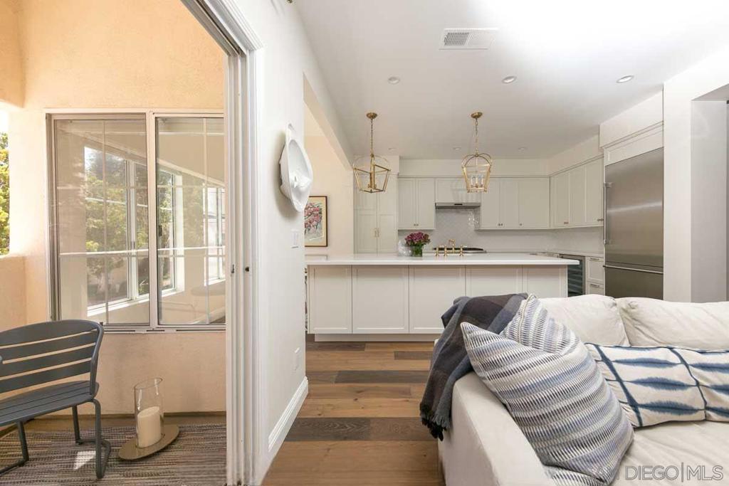Tucked within the elegant, gated community of La Florentine at Renaissance, this refined townhome offers a quiet, upscale lifestyle. Inside, a spacious and open floor plan is elevated by high ceilings and hardwood oak floors throughout. The kitchen is designed for both everyday living and entertaining, featuring custom white cabinetry with embedded drawers, quartz countertops, a large island, Thermador appliances, and a wine refrigerator. Thoughtful upgrades include recessed lighting, an alarm system, tile fireplace, custom curtains, and a full house water filtration system. Just outside, a generous front patio with slate flooring provides the perfect setting for barbecuing, dining Al Fresco, or a morning coffee. The primary suite is a true retreat with a large walk-in closet, private balcony, and a spa inspired bathroom that includes a soaking tub and shower behind a large frameless glass wall and marble flooring. Additional highlights include an oversized two car garage with storage on the lower level, as well as access to community amenities including a pool and hot tub. Set in the heart of UTC, this beautiful Italian style village offers a rare blend of privacy, high end living and everyday convenience. Residents are moments from a multitude of restaurants, the UTC shopping mall, nearby parks, walking trails, and everyday essentials. The location also provides close proximity to beaches, UCSD, and highly rated San Diego Unified schools.