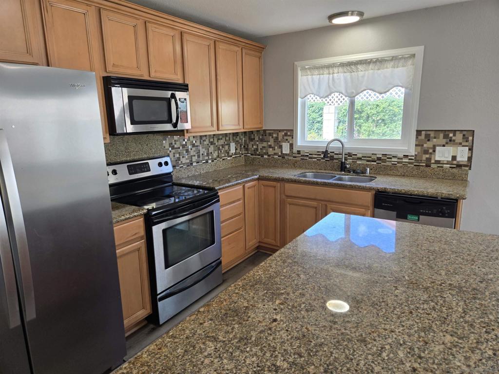 Welcome to this 4 bed/3 bath home in a quiet neighborhood just waiting for you! This single-story home features a kitchen with granite counters, an island with breakfast bar, stainless appliances, attached dining area & lots of cabinet space. There are also dual primary bedrooms with ensuite remodeled bathrooms for flexible living arrangements. Vinyl plank flooring, dual pane windows, central HVAC, solar power system, tankless water heater & wood burning fireplace. The flat lot has lots of useable space waiting for your imagination and the covered back patio is great for entertaining and enjoying some privacy. Conveniently located just minutes from highway access, shopping, dining, schools, entertainment & so much more!